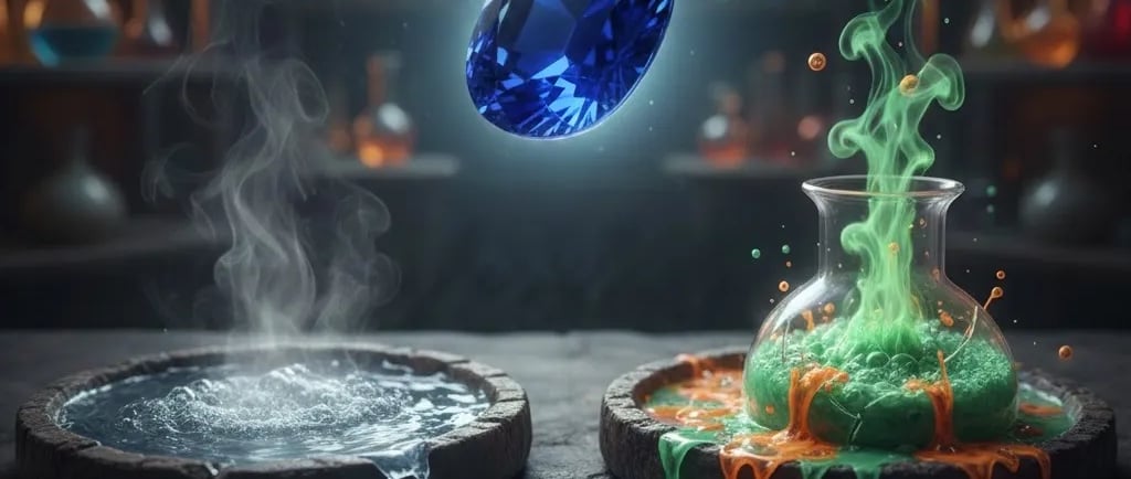ผลลัพธ์: น้องจะดูดซับสารเคมีเหล่านั้นเข้าไปในเนื้อพลอย จากสีฟ้าสวยๆ จะค่อยๆ กลายเป็นสีเขียวตุ่นๆ หรือสีคล้ำเหมือนสกปรก ซึ่งล้างยังไงก็ไม่ออกเพราะมันเข้าไปในเนื้อแล้ว