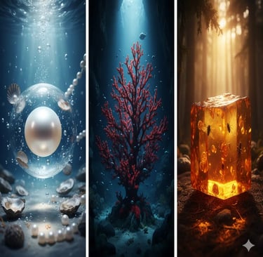 ในโลกแห่งอัญมณี มีกลุ่มของวัสดุล้ำค่าที่โดดเด่นและแตกต่างจากกลุ่มอื่น นั่นคือ พลอยอินทรีย์ หรืออัญมณีที่มาจากสิ่งมีชีวิต (Biogenic Gems) ซึ่งรวมถึงไข่มุก ปะการัง และอำพัน พลอย เหล่านี้ไม่ได้ก่อตัวจากการอัดแน่นของแร่ธาตุภายใต้ความร้อนและความดันทางธรณีวิทยา แต่เป็นผลผลิตจากกระบวนการทางชีวภาพอันซับซ้อนของสิ่งมีชีวิตที่ผสานกับธรรมชาติอันยาวนาน